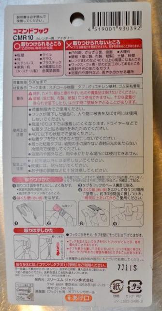 簡単に剥がせる 壁に跡が残りにくい 3m コマンド フック カレンダー用 S 4個 タブ10枚入り Cmr10のレビュー ジグソー レビューメディア